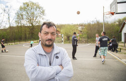 Agron Shllaku stands in an UNMIK-sponsored playground built in 2018 in the multiethnic village of Vidaje/Vidanje. Shllaku says: “The United Nations has brought the children together. This is where they meet and hang out. The situation is far better since the playground was built.” Photograph by Amanda Fisher / UNMIK