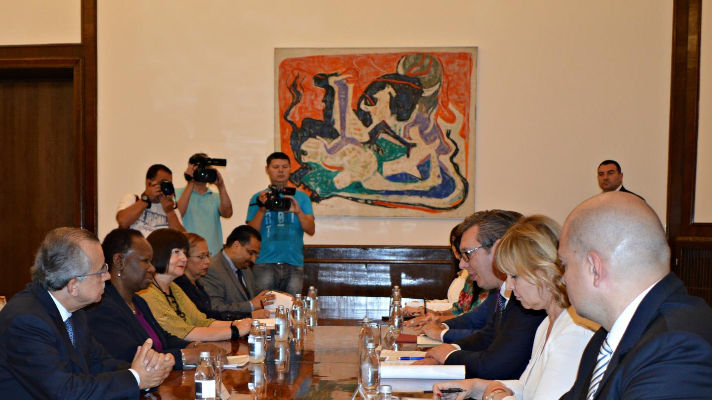 On 11 June, the United Nations Assistant Secretary-General for Peacekeeping Operations, Ms. Bintou Keita, and Special Representative of the Secretary-General and head of UNMIK, Mr. Zahir Tanin, met in Belgrade with Serbian President Aleksandar Vučić, First Deputy Prime Minister/Foreign Minister Ivica Dačić and Head of the Serbian Government Office for Kosovo (OKiM), Marko Djurić.