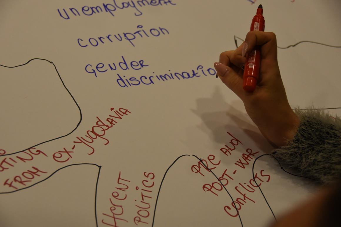 During the second part of the event, participants discussed the most pressing issues that they face as young people in Kosovo in mixed groups and tried to identify joint solutions.