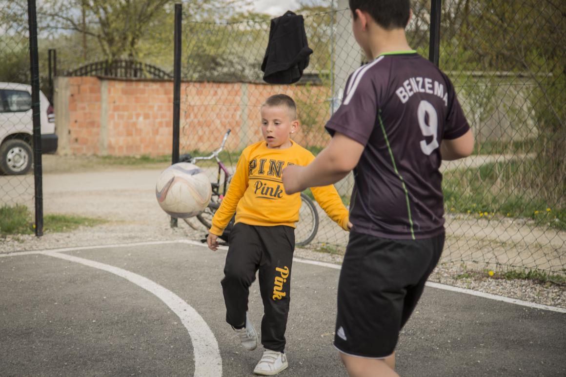 The playground, which has a set of basketball hoops and football goals, is available for not only the 68 Kosovo Serb children and 94 Kosovo Albanian children who live in the village, but also 270 families from surrounding towns.