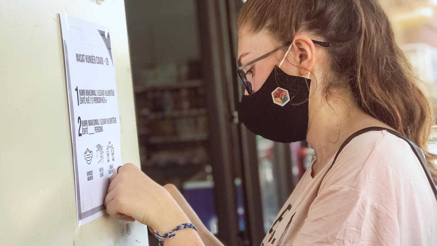 Young cyclists delivered more than 600 reusable masks to 200 Albanian, Serbian, Roma and Ashkali families in Lipjan/Lipljan with UNMIK support.