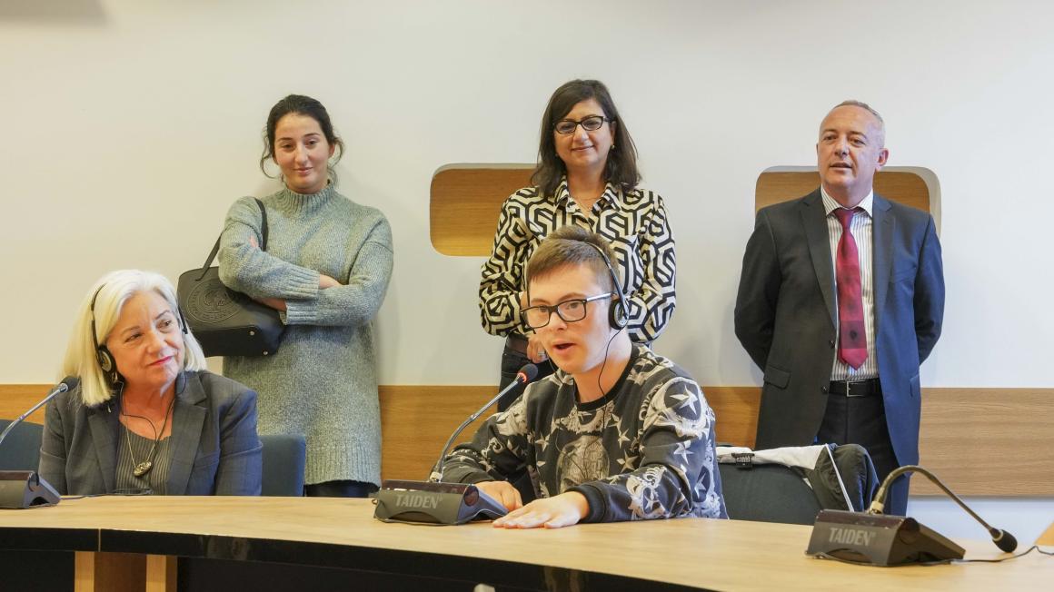 The 27-year-old was part of a group of about 20 young people living with Down Syndrome in Kosovo who visited the UN Kosovo team and UNMIK Headquarters on UN Day on 24 October, coinciding with Down Syndrome Awareness month.