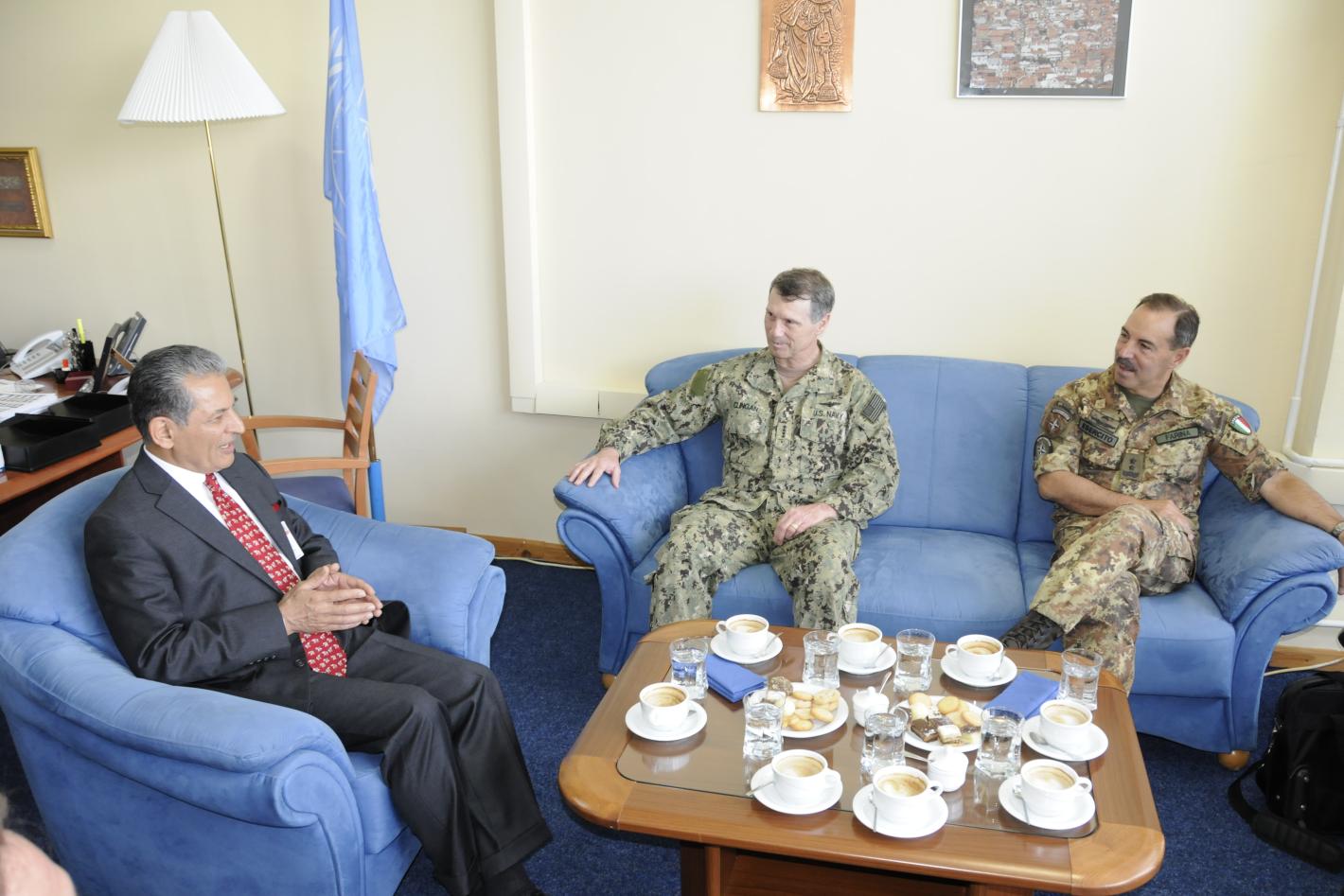 Colonel Vittorio Russo, Italian National Intelligence Cell Commander (left), visited UNMIK today and met with the Special Representative of the Secretary-General in Kosovo, Farid Zarif.