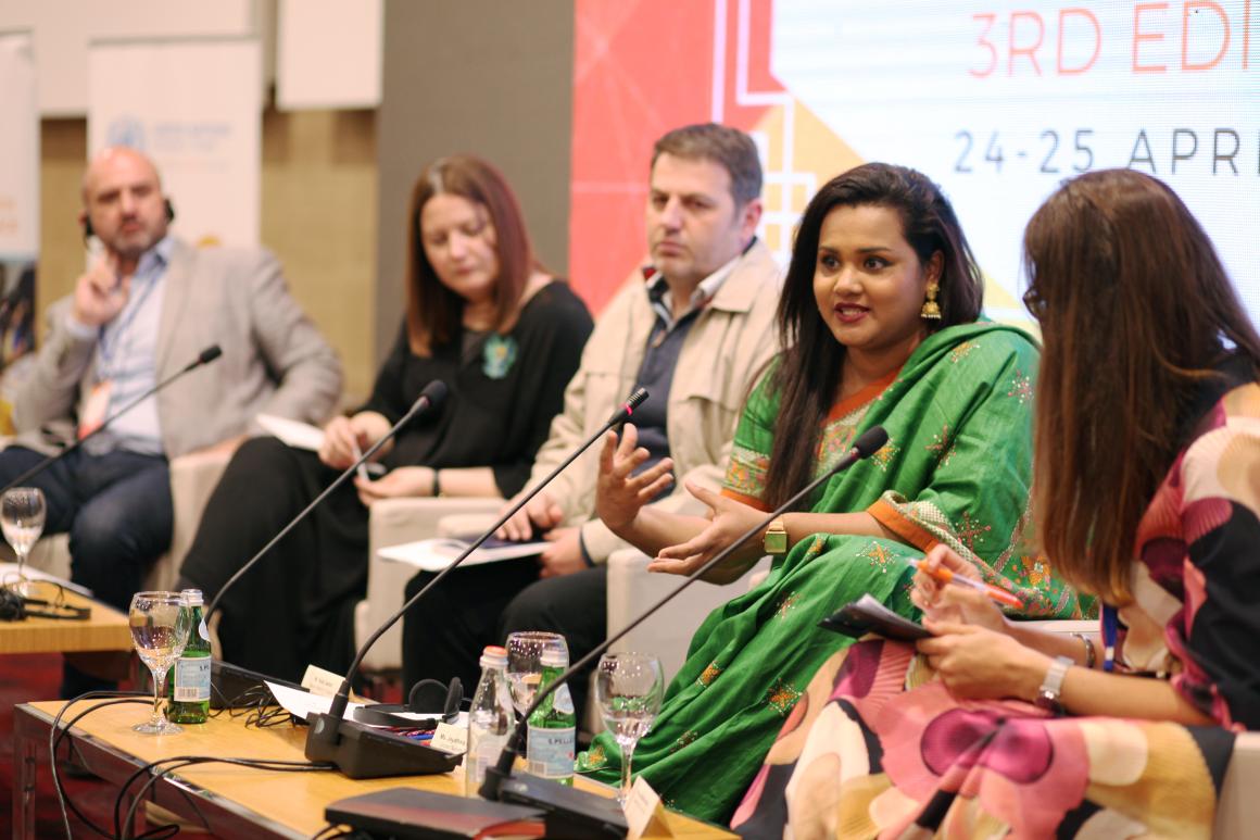 The panel featured the New York-based UN Envoy on Youth Jayathma Wickramanayake, who was present in Kosovo for the event, event organizer and United Nations Mission in Kosovo youth focal point Iana Minochkina, Kosovo Ministry of Culture, Youth and Sports head of policy development for youth Vedat Jashari, American University of Kosovo identity researcher Edona Maloku and the Center for Social Initiatives executive director Veljko Samardžić.