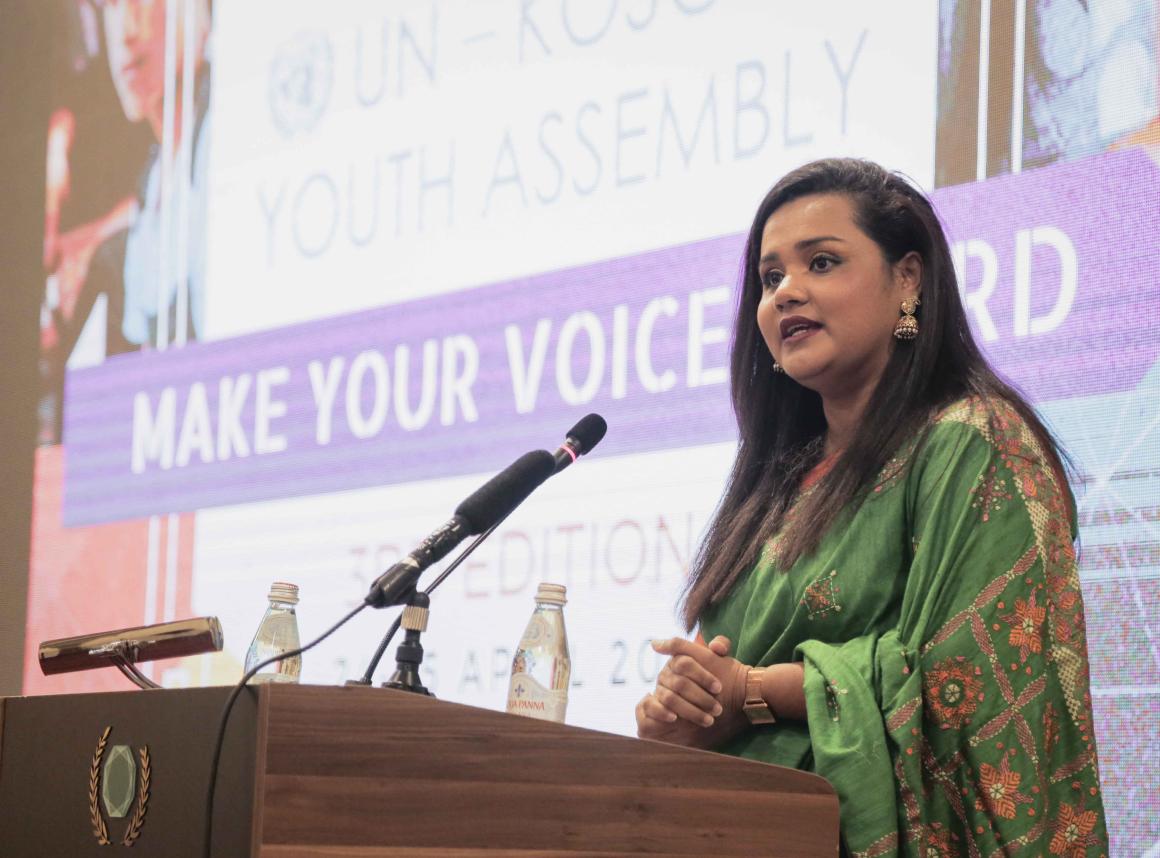 Envoy Ms Wickramanayake spoke to the audience about her own experience as a young activist growing up in conflict-riddled Sri Lanka, yearning for peace and inter-community trust.