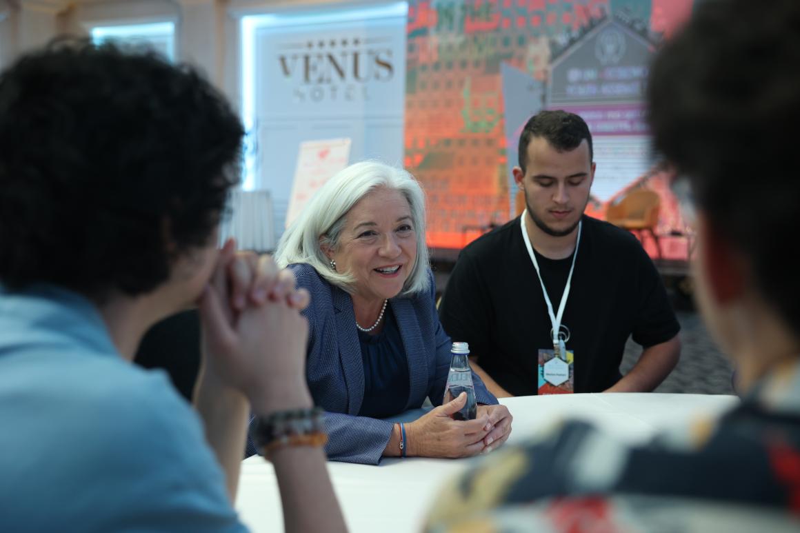 On her table, Everest climber and UN STG Champion, Uta Ibrahimi, who heads Utalaya, spoke to young participants about the importance of the youth in interacting in nature – camping, hiking, cleaning waste – in order to understand and combat the climate crisis as well as for overall growth.