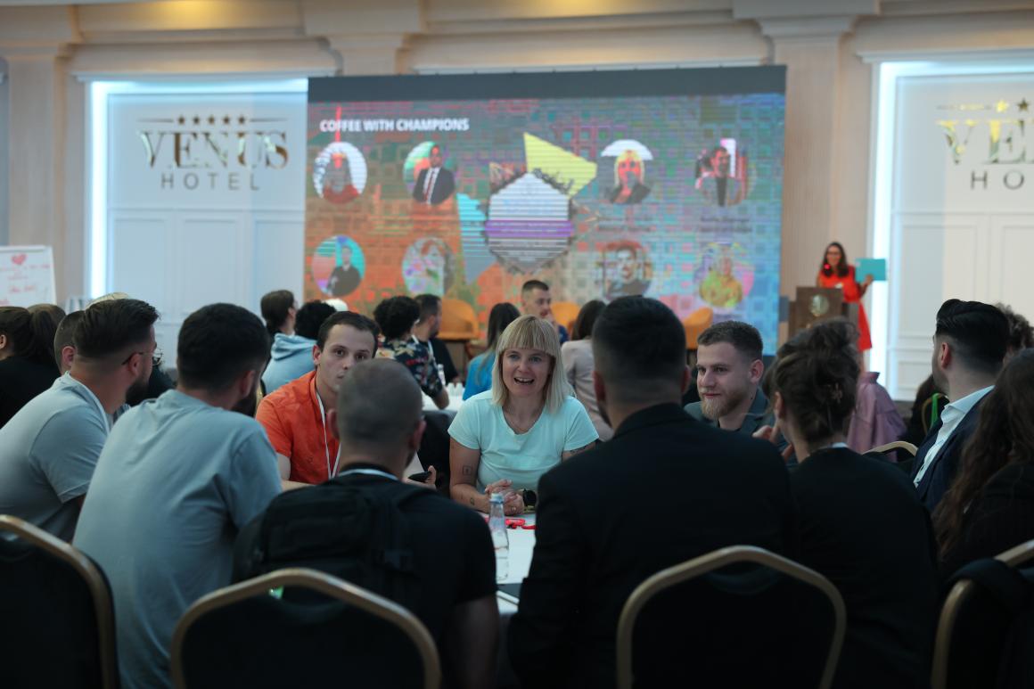 This diversity and exchange were the heart and spirit of the ‘coffee with champions’ session on day two of the 4th UN Youth Assembly in Kosovo, which brought together 150 young leaders from across Kosovo, and, for the first time, from the wider region – Albania, Bosnia and Herzegovina, Montenegro, North Macedonia and Serbia – to the 4th UN Youth Assembly in Kosovo.