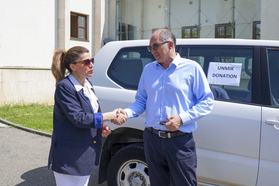 At the close of their meeting, SRSG Ziadeh donated a 4x4 vehicle to the municipality on behalf of UNMIK, the keys of which were conferred to Mr. Totaj.