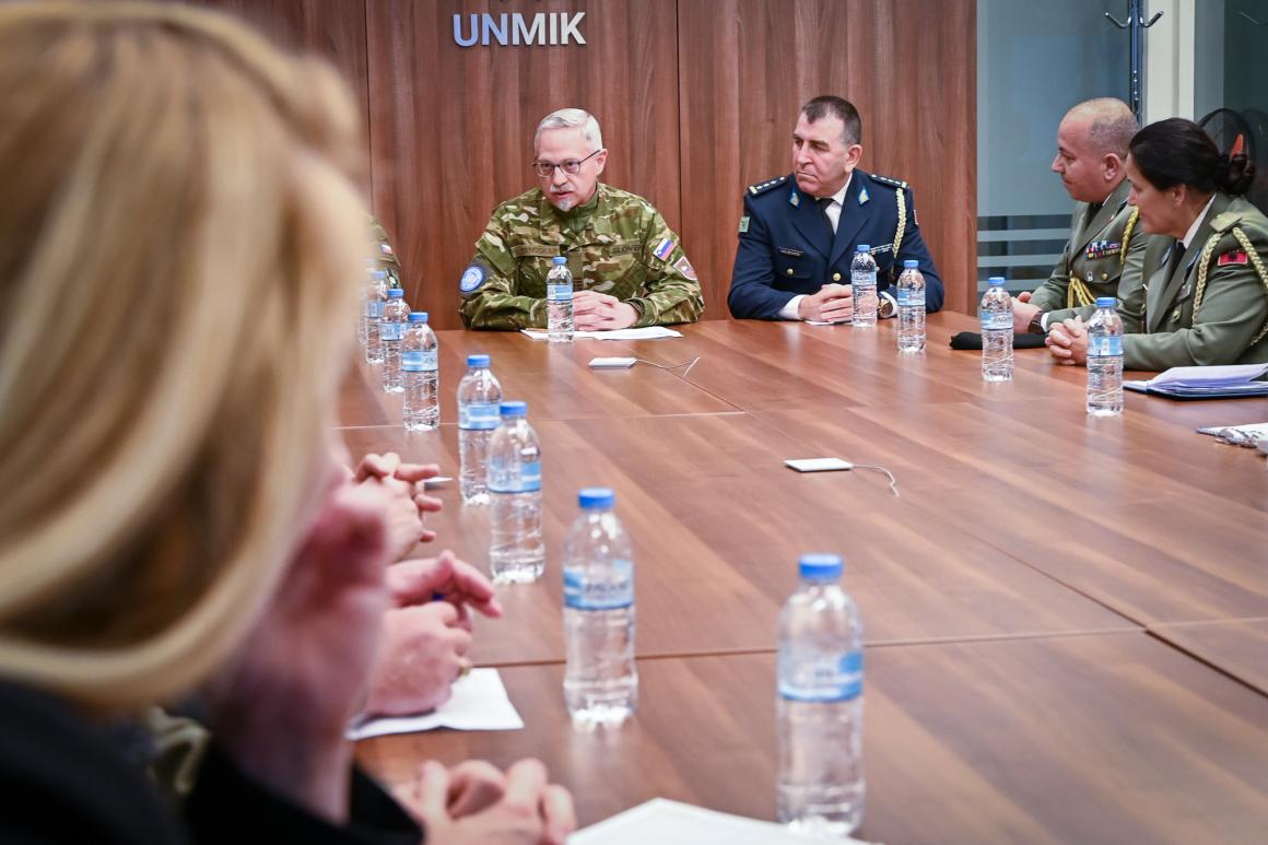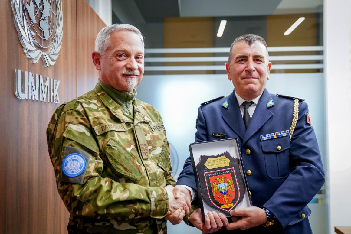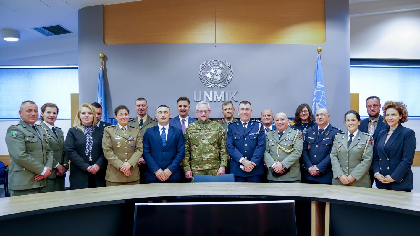 The visit was organized by Albania’s College of Security and Defence. Those attending the Advanced Course for Security and Defense were briefed by UNMIK’s Head of the Military Liaison Office Colonel Samo Zanoškar, Lieutenant Colonel Vitalie Bunduchi and UNMIK Spokesperson Sanam Dolatshahi.