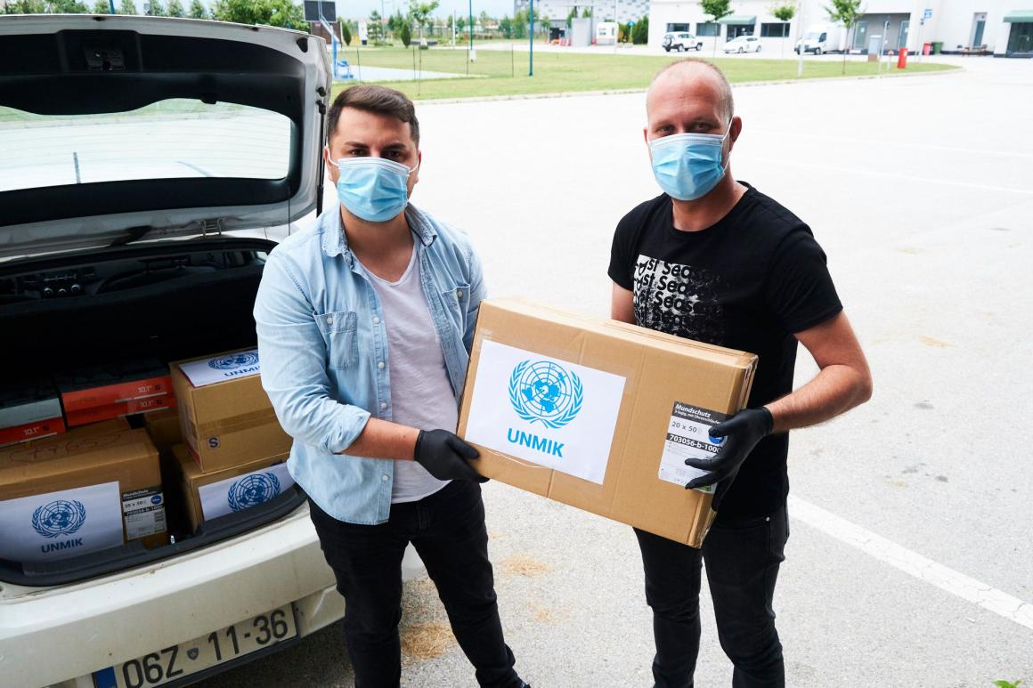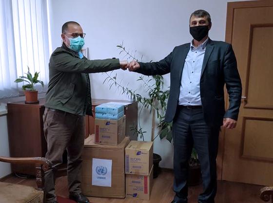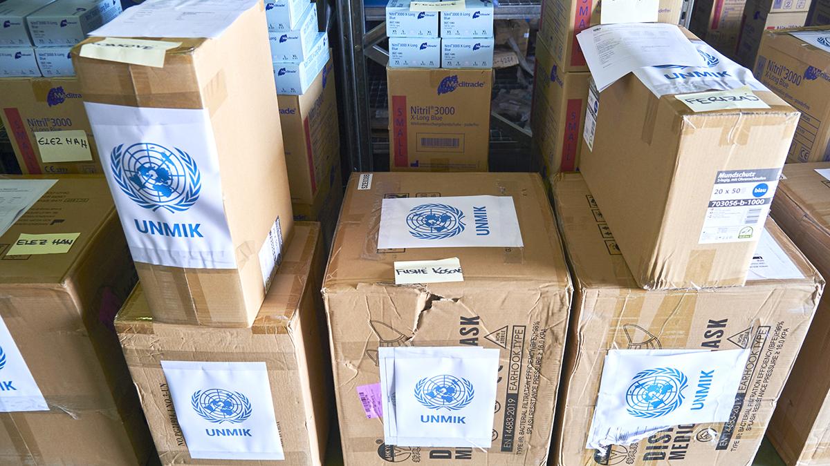 UNMIK has completed its second phase of a Kosovo-wide donation campaign, delivering personal protective equipment packages to 33 municipalities totaling: 1381 boxes of gloves (50 pairs in each box) and 2000 boxes of masks (50 in each box), as well as 387 tablet computers.