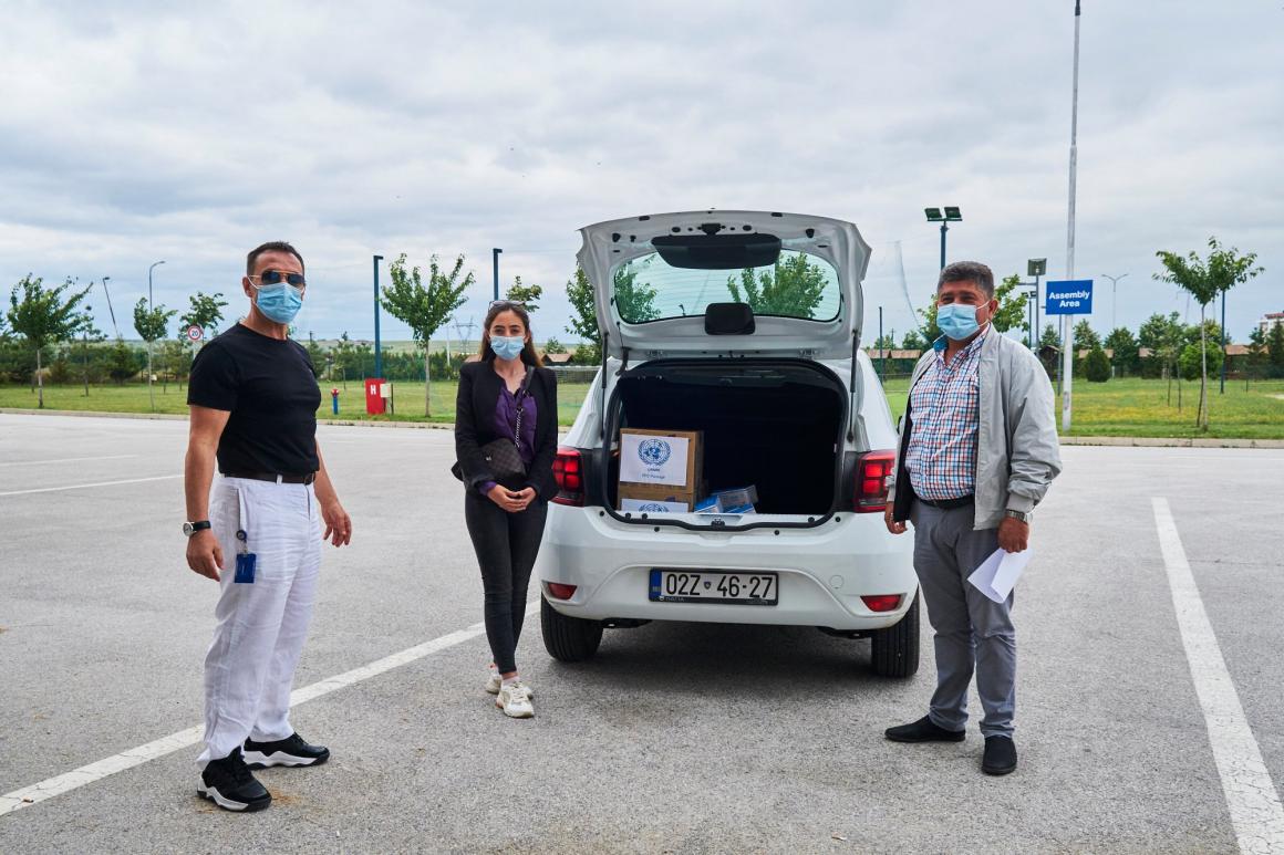 After an initial two-week donation drive of health and hygiene packages and 3D printers in May, the latest deliveries took place throughout this past week across Kosovo and to the Basic Court of Pristina, with representatives receiving the packages from UNMIK personnel whilst respecting safety measures - as Kosovo continues to battle the global pandemic.