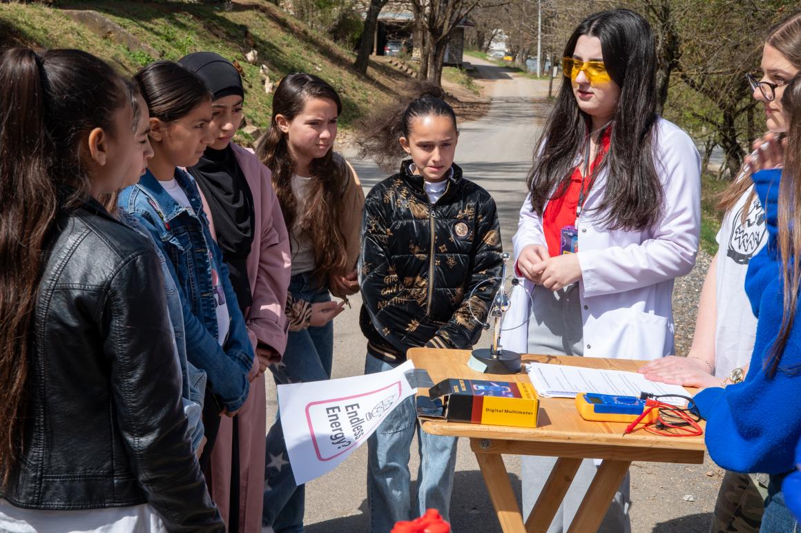 A local NGO, Shqiponjat e Dardanës, set up a mobile lab as part of the “Science in Motion” project, bringing science directly to the doorsteps of young learners across Kosovo. The van is equipped with microscopes, solar panels, and compact chemistry kits. The girls observed chemical reactions, built simple circuits, and used a telescope to explore the stars.