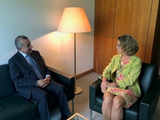 In the margins of these meetings, SRSG Tanin also took the opportunity to engage with representatives of the Center for International Peace Operations (ZIF), German Institute for International and Security Affairs (SWP), and the CSSP Berlin Center for Integrative Mediation at a roundtable discussion at the invitation of the Berlin-based ZIF.