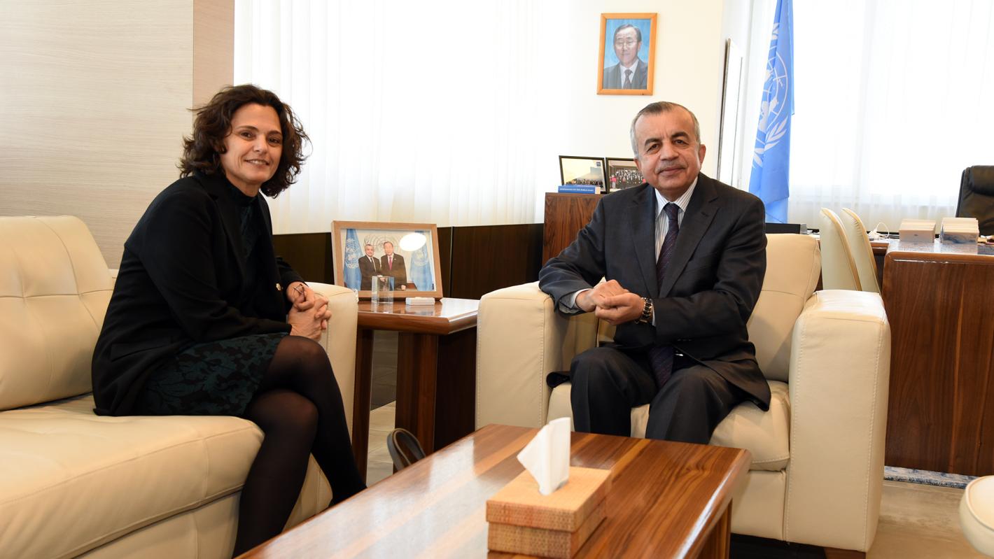 Special Representative of the Secretary-General (SRSG), Mr. Zahir Tanin (right) welcoming the Ambassador of Israel in Belgrade, Dr. Alona Fisher-Kamm (left) IN UNMIK HQ. ©UNMIK Photo