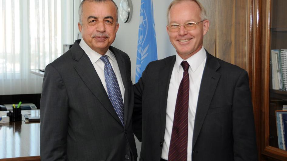 The Special Representative of the UN Secretary-General, Zahir Tanin with the new Head of the OSCE Mission in Kosovo, Ambassador Jan Braathu. ©UNMIK Photo by: Arton Muçolli