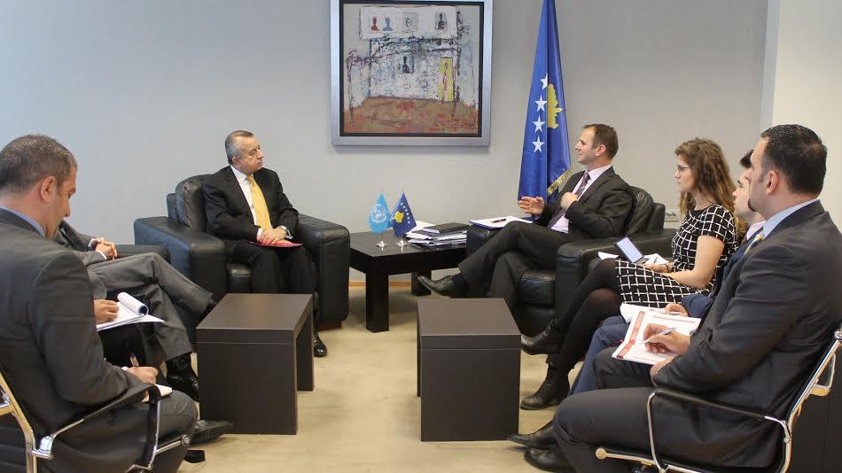 12 February 2016, Pristina - The Special Representative of the Secretary-General, Zahir Tanin, accompanied by Deputy Special Representative of the Secretary-General Christopher Colman, was received by Minister of Justice, Hajredin Kuci. They discussed the government’s priorities, and how the international community can best support them.
