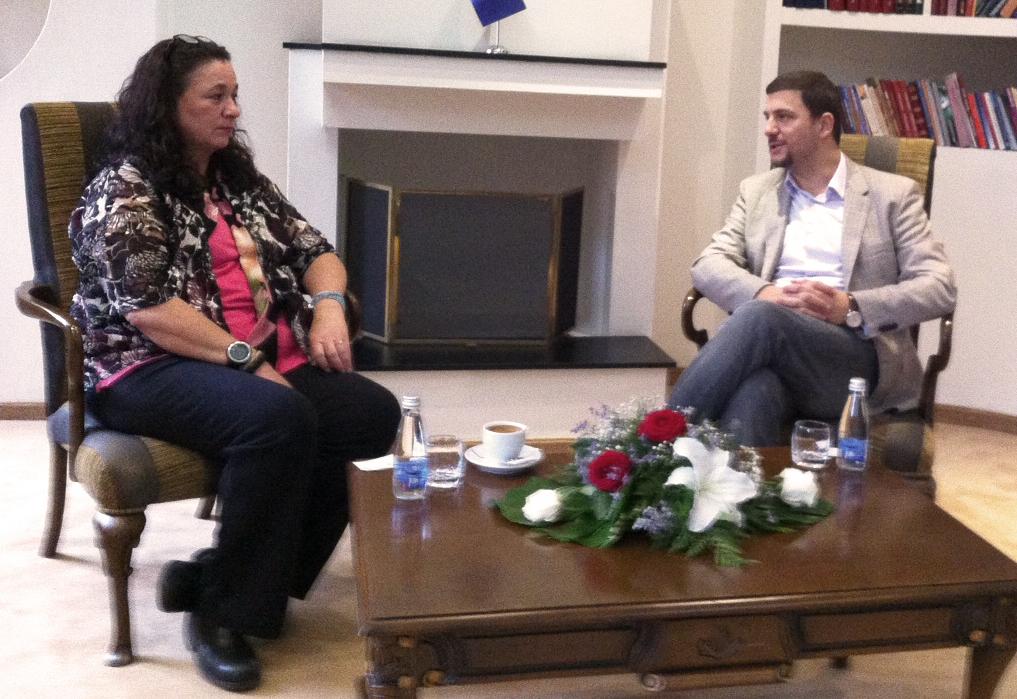 11 November 2014 - The Deputy Special Representative of the Secretary-General (DSRSG) in Kosovo, Jennifer Brush, today met the Kosovo Minister of Culture, Youth and Sport, Mr. Memli Krasniqi. As part of her introductory meetings with the Kosovo authorities, the DSRSG discussed with the Minister a range of issues covered by the Ministry, including cultural events and sporting activities. She expressed to the Minister UNMIK's readiness to support small projects through its Confidence Building Projects Scheme. The Minister thanked UNMIK for the visit.