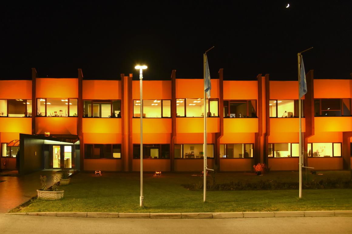 To commemorate the International Day for the Elimination of Violence against Women, and mark the launch of the 16 Days of Activism against Gender Based Violence, UNMIK staff wear orange and UNMIK building is illuminated in orange.