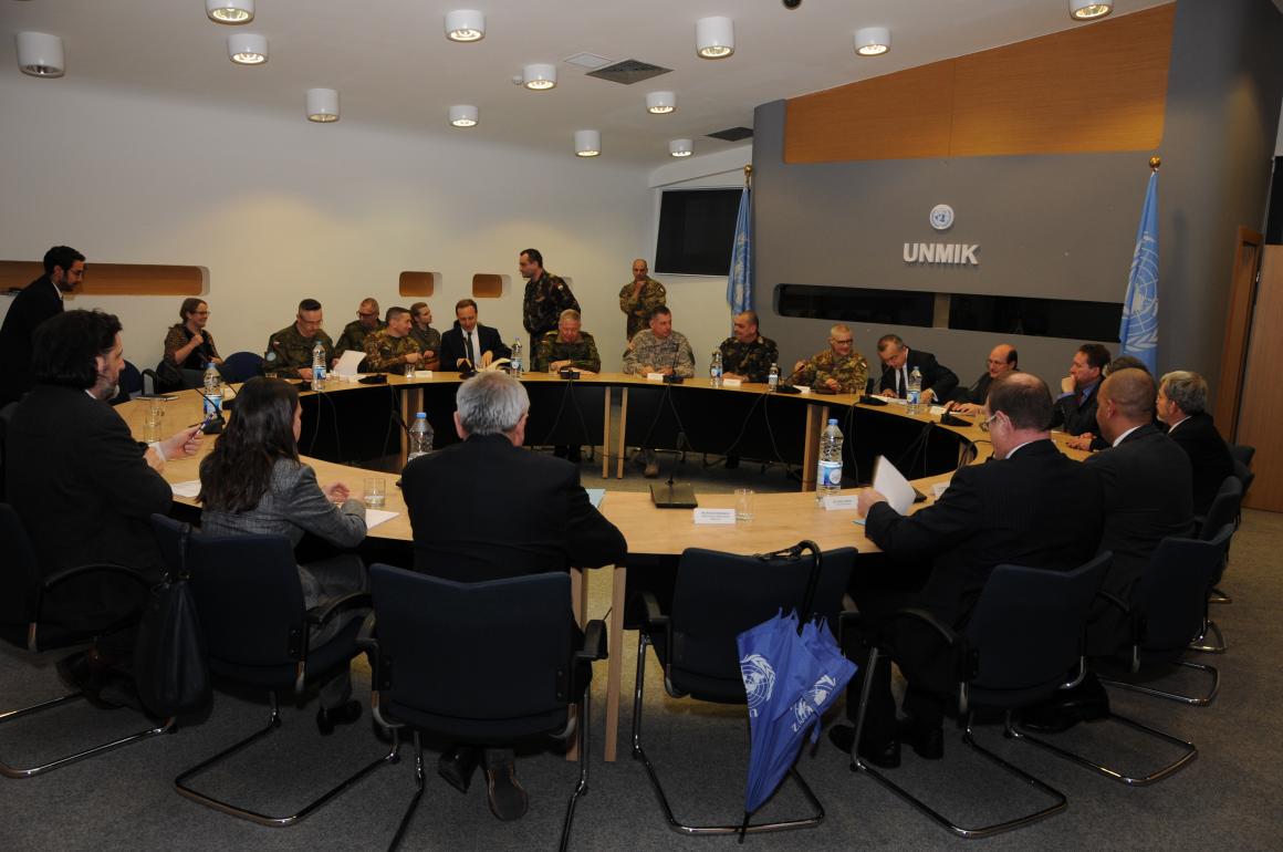 Pristina, 10 March 2015 – SRSG Zahir Tanin hosted a briefing for the leadership of KFOR at UNMIK headquarters. KFOR Commander, Major General Guglielmo Luigi Miglietta and other senior members of KFOR were briefed by UNMIK senior management on UNMIK’s structure and activities, and exchanged information on current issues.