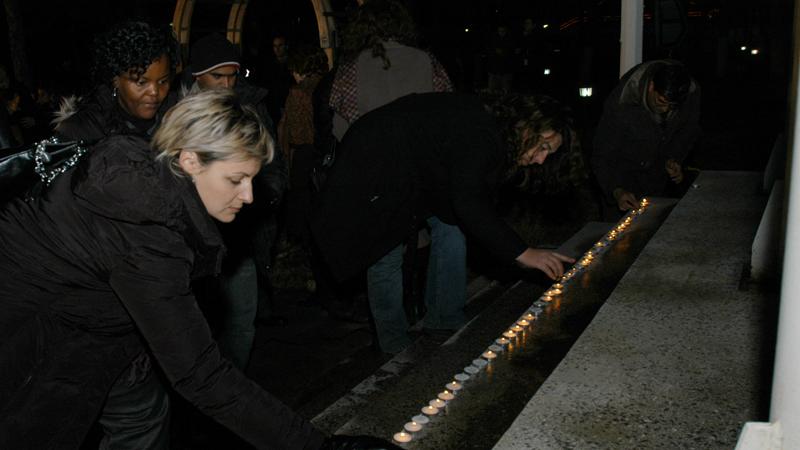 After the SRSG's intervention, UNMIK staff lit candles in memory of the victims under the UN flag.