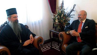 On 31 May, UNMIK SRSG Lamberto Zannier met with His Grace Bishop Teodosije, the Head of the Diocese of Raška and Prizren at Gračanica Monastery. Mr. Zannier was accompanied by Leonid Markaryan, the Head of the UNMIK Office for Community Support and Facilitation. The meeting focused on the current concerns of the Serbian Orthodox Church (SOC) in Kosovo, in particular, the long-term protection and reconstruction of the SOC patrimonial sites