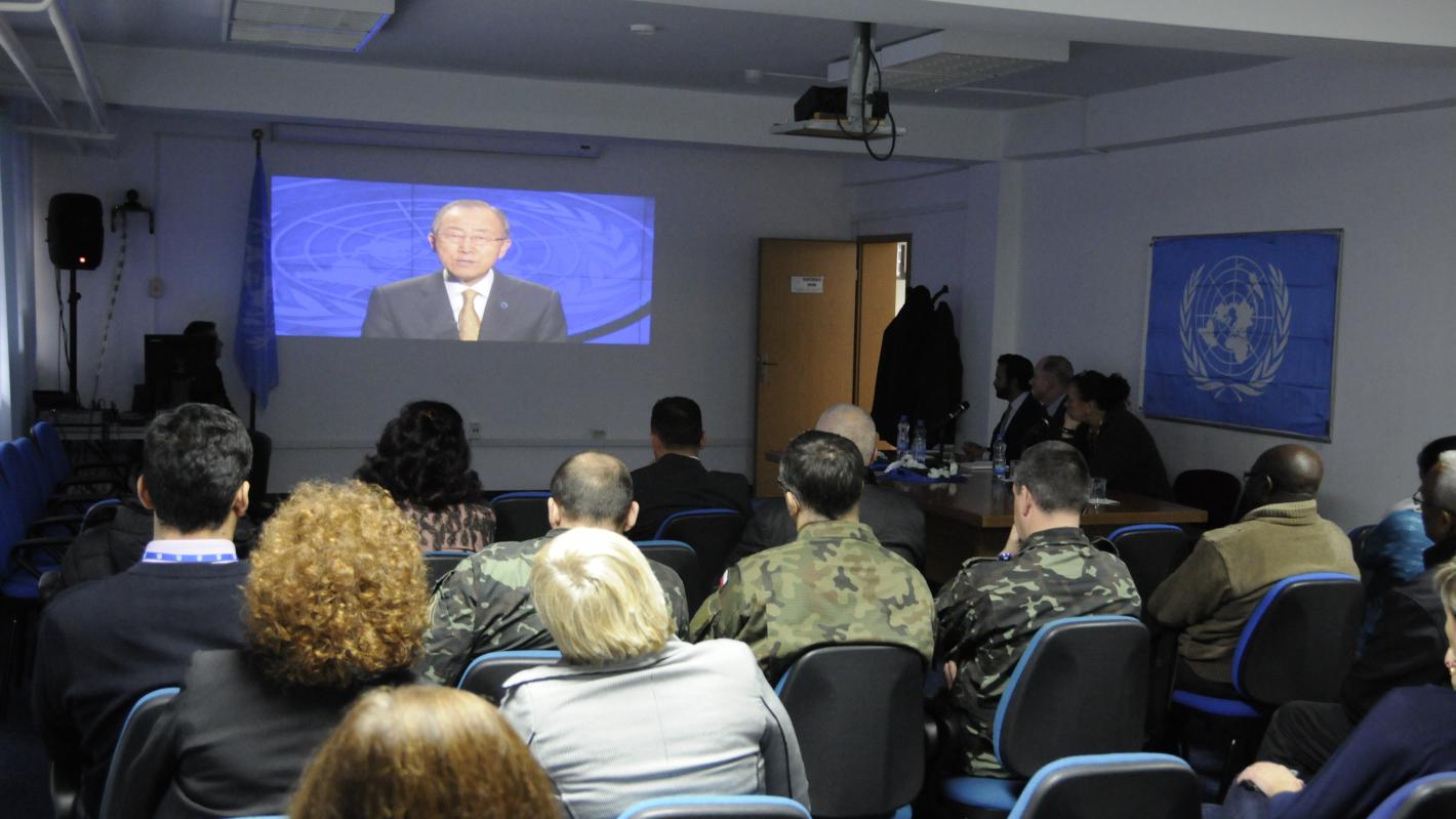 24 October 2014 – United Nations Day was celebrated at UNMIK Headquarters in Pristina today. On this day in 1945, the UN officially came into being – not just as an institution, but as a solemn promise to the world’s people. UNMIK’s event began with a video message from Secretary-General Ban Ki-moon. He said , “The United Nations is needed more than ever at this time of multiple crises… At this critical moment, let us reaffirm our commitment to empowering the marginalized and vulnerable. On United Nations Day, I call on Governments and individuals to work in common cause for the common good.”