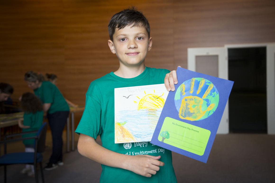 Dorart Isufi with his World Environment Day drawing and promise.