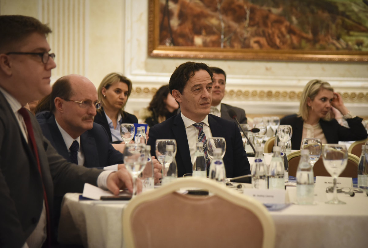 Christopher Coleman, Deputy Special Representative of the Secretary-General (moderator) and panelists Edi Gusia, Chief Executive of Agency for Gender Equality, Duda Balje, Chairperson of the Assembly of Kosovo Committee on Human Rights, Gender Equality, Missing Persons and Petitions, Valdete Daka, Head of the Central Election Commission and Hilmi Jashari, Ombudsman.